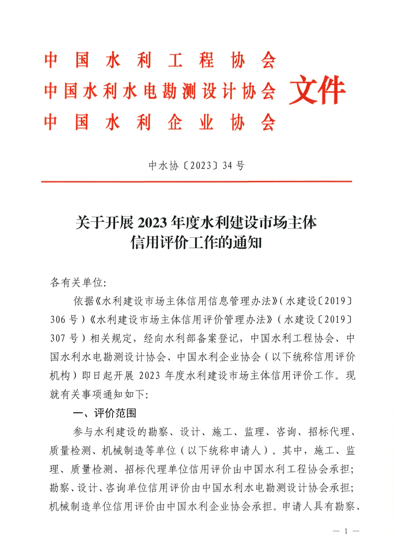 轉(zhuǎn)發(fā)<關(guān)于開展2023年度水利建設(shè)市場主體信用評價工作的通知>